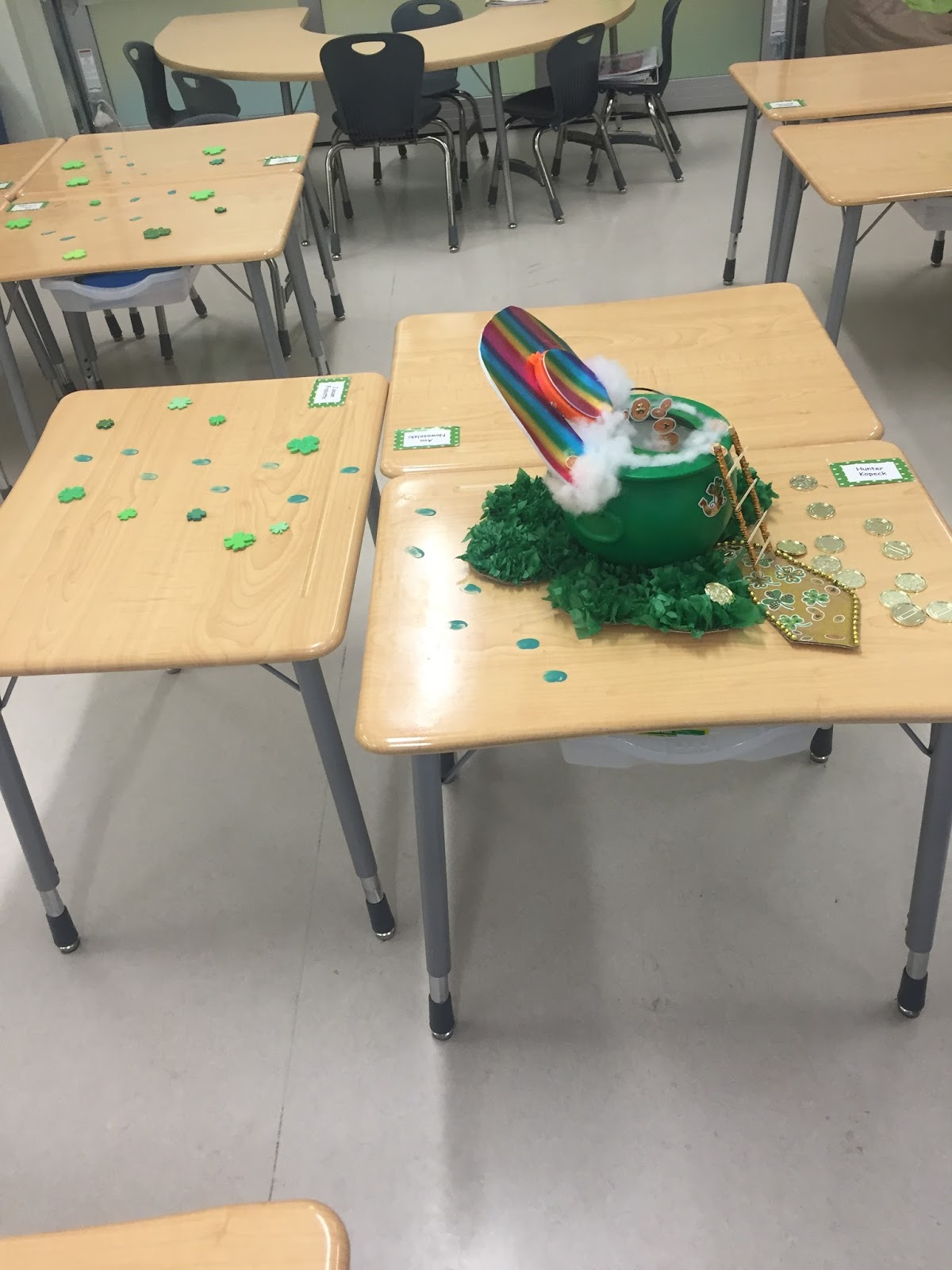 We set up our leprechaun traps around the room, unfortunately we didn't catch a leprechaun but he did leave us some treats!