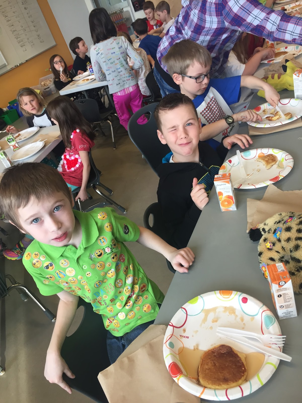 Last Thursday, we celebrated the 100th day of school! All the students came to school dressed with 100 things on a T-shirt. In the morning, we had a pancake breakfast and rotated through centers. We also made party hats! In the afternoon, we did a STEM building activity with Mrs.Harding's class and enjoyed a 100 day treat. It was a FANTASTIC day!